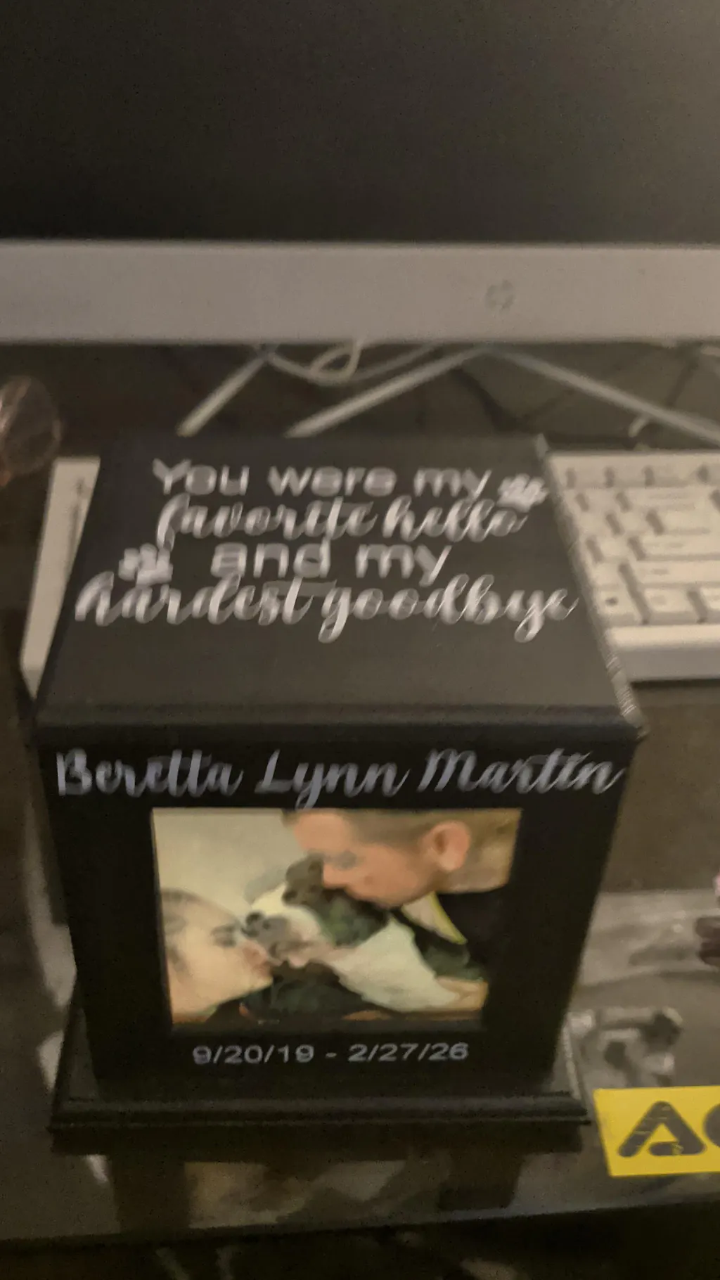Received our box today. We couldn't be more pleased. At a heartbreaking time when you lose a pet this piece is a beautiful resting place for them